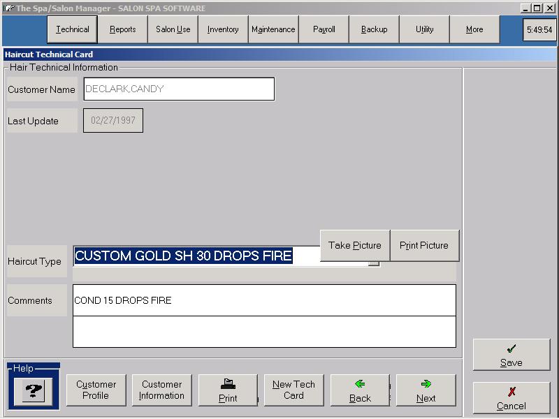 - Hair technical card allows pictures to be saved.