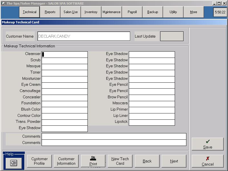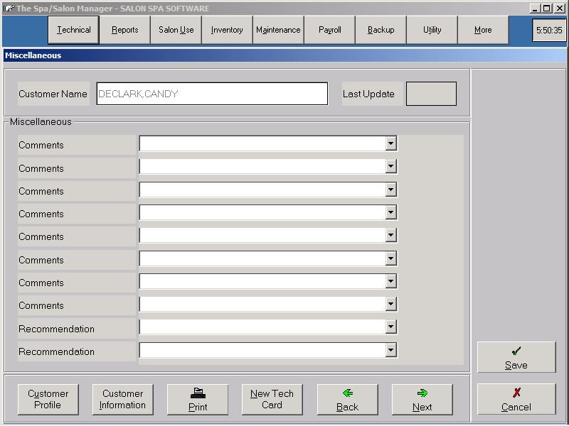 - Comment lines are provided for personal notes regarding client.